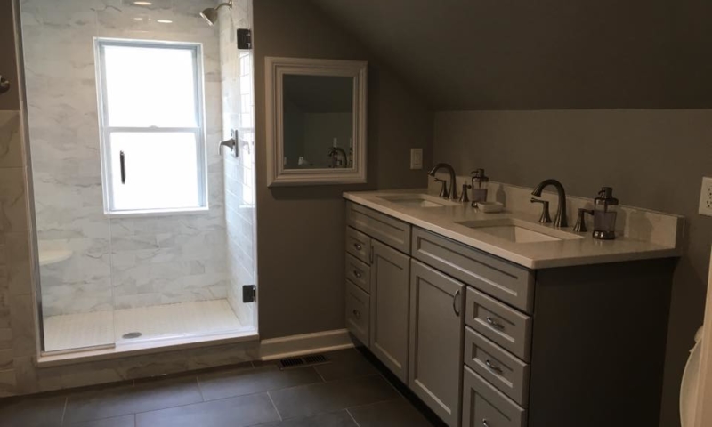 “We wanted to add a bathroom off of our 2nd floor master bedroom with a tub and separate shower. The area we had to work with was very limited on space for such a project, but Dan Ryan, with Rhymes Design & Construction was able to create a plan that was able to work within the space we had. With his design, we even had room for a double bowl sink. Needless to say, we are a very satisfied customer! The quality of work, cleanliness on the jobsite and time from start to finish was very professional.”